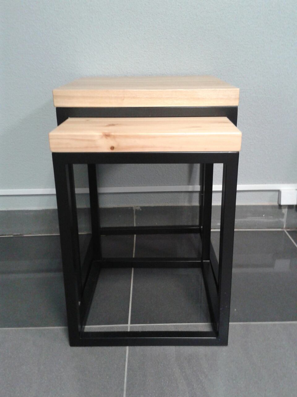 код 87966Эргономичный набор в стиле Лофт из табурета и журнального столика на геометрическом каркасе.