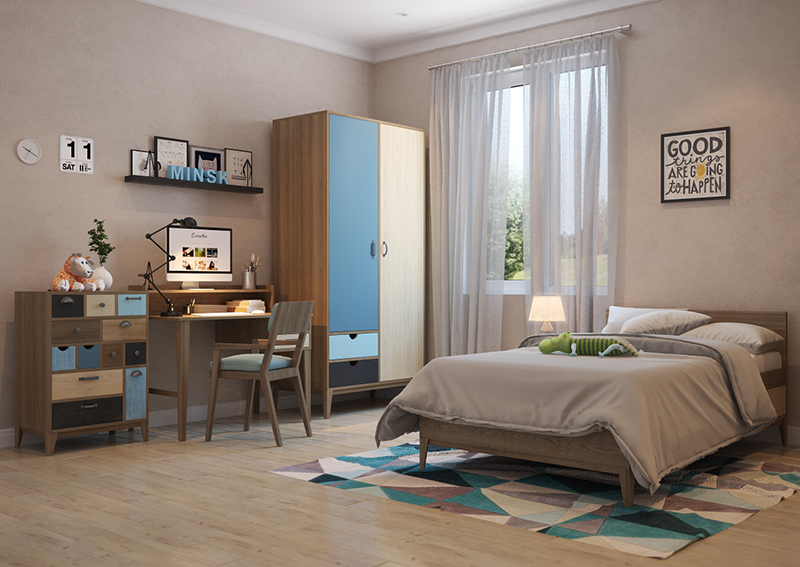Комплект мебели «Малімонікі» станет украшением любой детской спальни. Каждый предмет в наборе изготовлен из 100% массива и покрыт специальным защитным маслом. Выдвижные ящики и створки работают за счет современной фурнитуры Blum плавно и бесшумно.