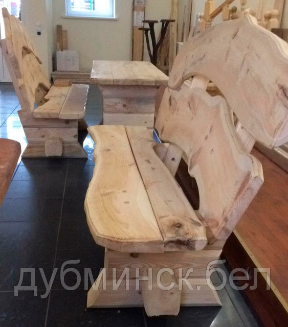 Комплект: две скамьи и стол из массива. Материал на выбор.