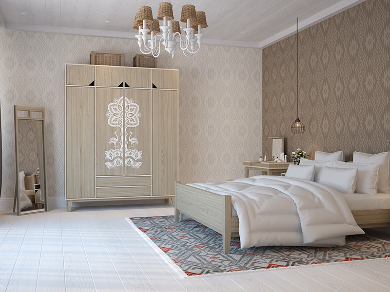 Роскошный комплект мебели «Выцінанка» поможет создать в спальне уютную обстановку. Стильная мебель изготовлена из массива с использованием современной фурнитуры Blum. В комплекте представлена большая кровать, вместительный шкаф, туалетный столик, комод и прикроватная тумбочка.