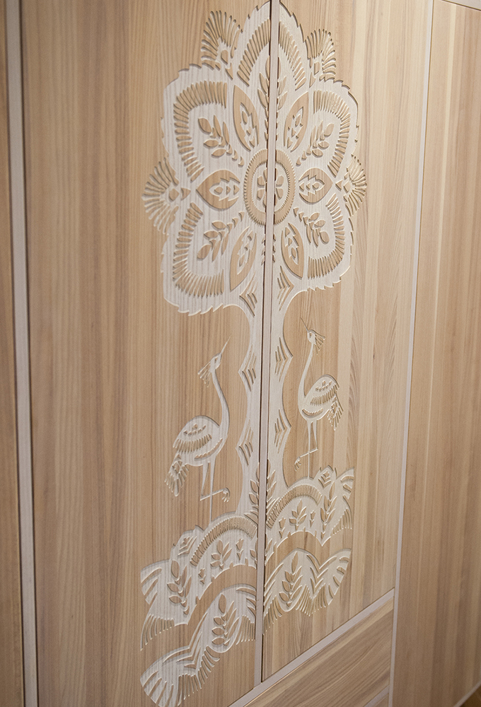 Выдвижные ящики и распашные дверцы оснащены системой открывания нажатием и доводчиками.