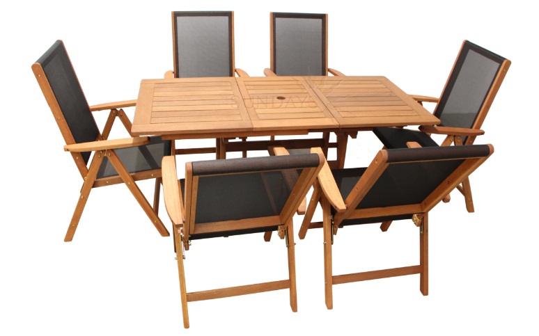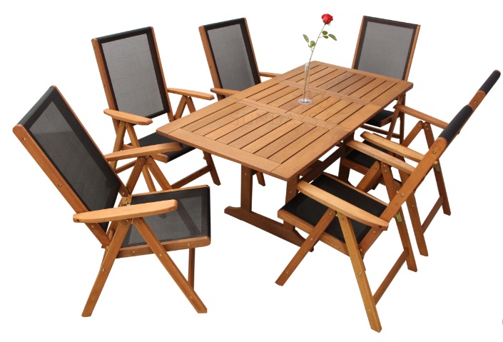 Данный мебельный набор позволяет сделать приусадебный участок уютнее, а также организовать комфортное место для приятного времяприпровождения на свежем воздухе. Набор рассчитан на шесть персон, и кроме обеденного стола включает в себя шесть комфортных раскладных стульев. При изготовлении используются лучшие материалы. Изделия покрываются несколькими слоями защитного лака.