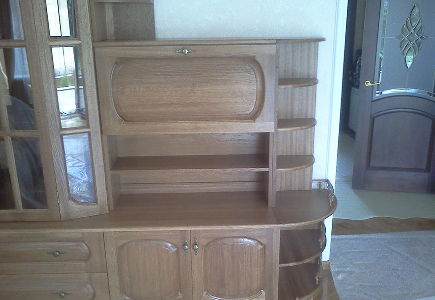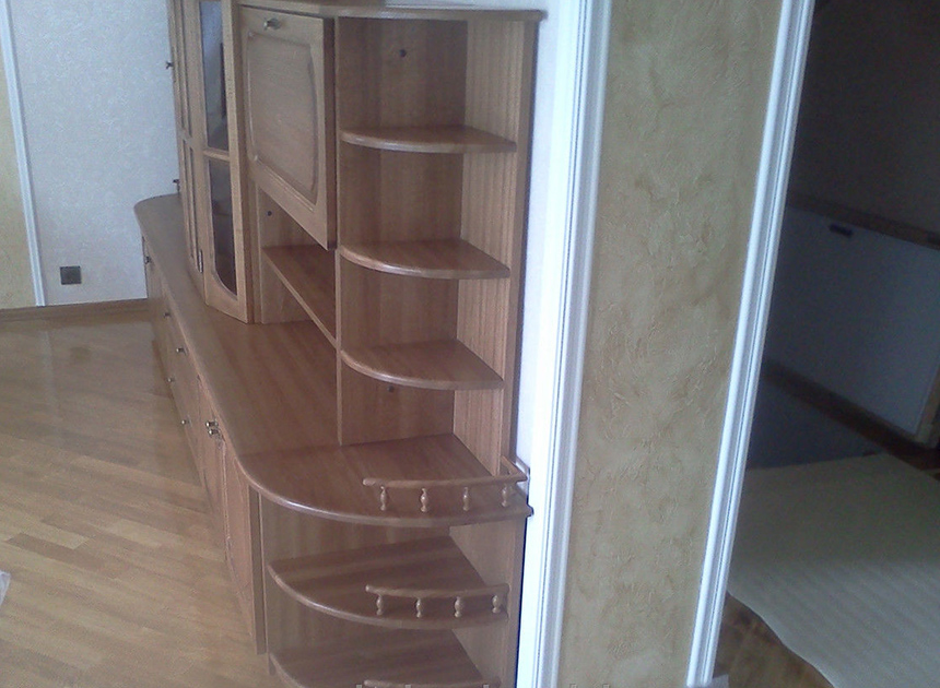 Фигурная стенка выполнена из натурального массива, отличающегося надежностью и долгим сроком службы. Конструкция с оригинальным дизайном станет настоящим украшением комнаты с любым интерьером.