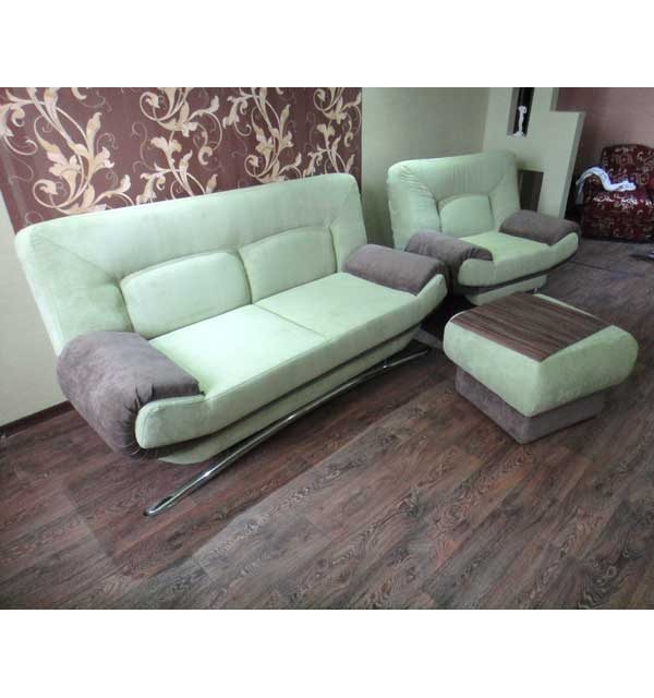 В комплект входят диван-кровать, одно кресло и 4 декоративные подушки. Механизм: пума. Наполнение: пружинный блок, пружинная змейка, пенополиуретан.