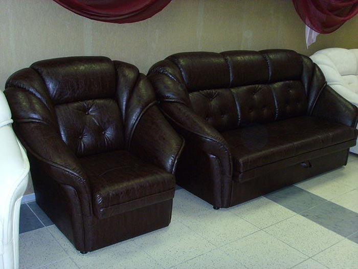 В комплект входят диван-кровать, одно кресло и 4 декоративные подушки. Механизм: пума. Наполнение: пружинный блок, пружинная змейка, пенополиуретан.