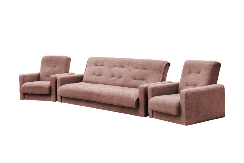 В набор входят диван-кровать, два кресла и 2 декоративные подушки. Механизм: книга. Наполнение: пружинный блок, пенополиуретан.