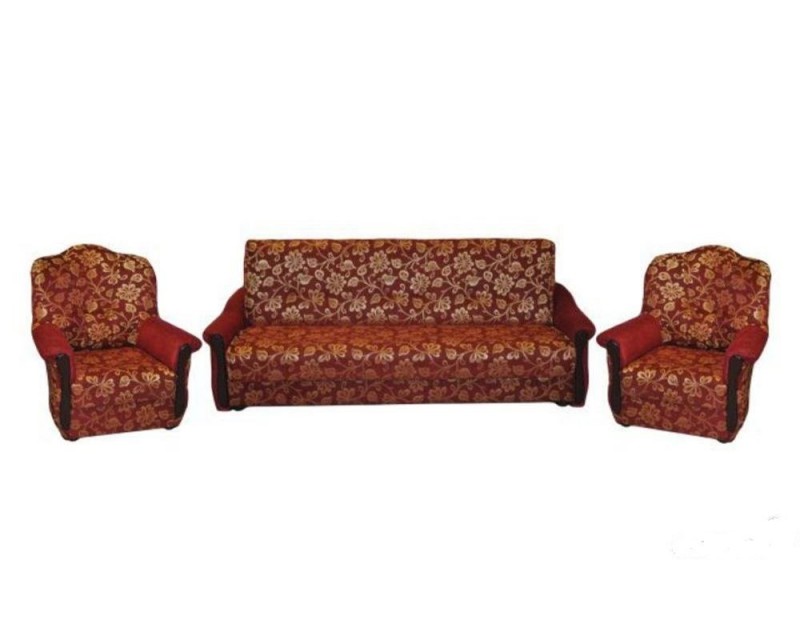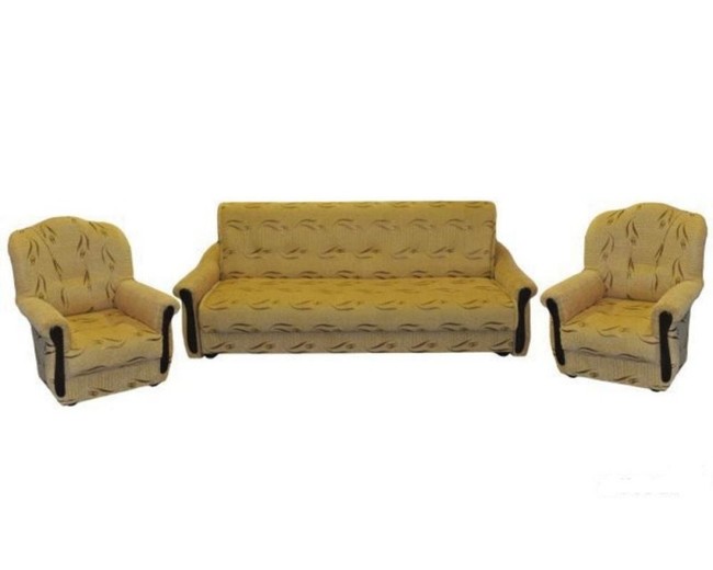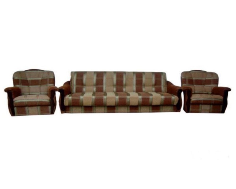Состоит из дивана и двух кресел. Диван с ящиком для белья. Механизм: книжка.