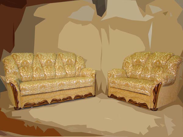 В комплектацию набора входит двух- и трехместный диван. Набор обит узорной тканью бежевого цвета.
