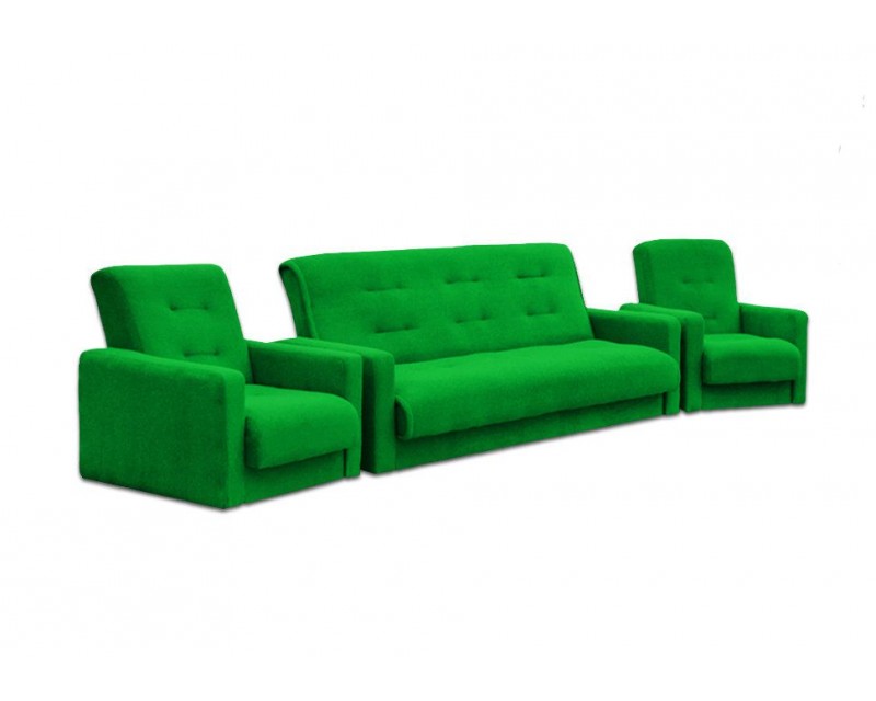 В набор входят диван-кровать, два кресла и 2 декоративные подушки. Механизм: книга. Наполнение: пружинный блок, пенополиуретан.
