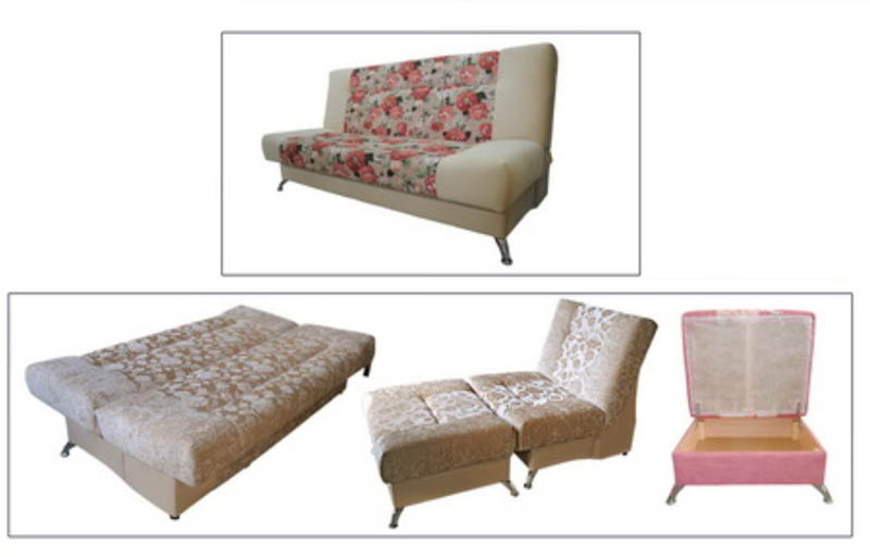 Комплект для гостиной "Оливия" состоит из трех элементов: кресла, дивана-кровати и банкетки. Оба дивана трансформируются в полноценное спальное место. Банкетка служит приставным элементом как для кресла, так и для дивана.