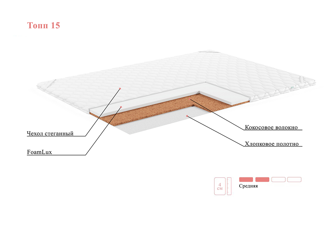 Материалы: FoamLux (пенополиуретан), Кокосовая койра, Хлопковое полотно.