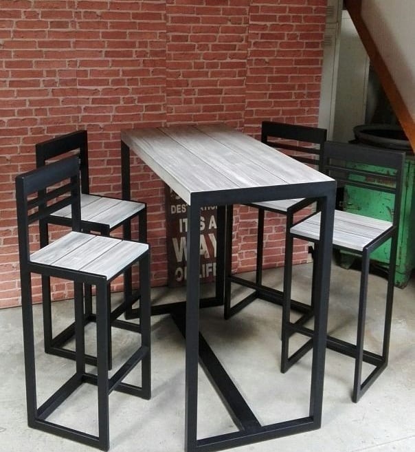 код 131147Готовый комплект из стола и четырех барный стульев на металлическом основании в стиле лофт.