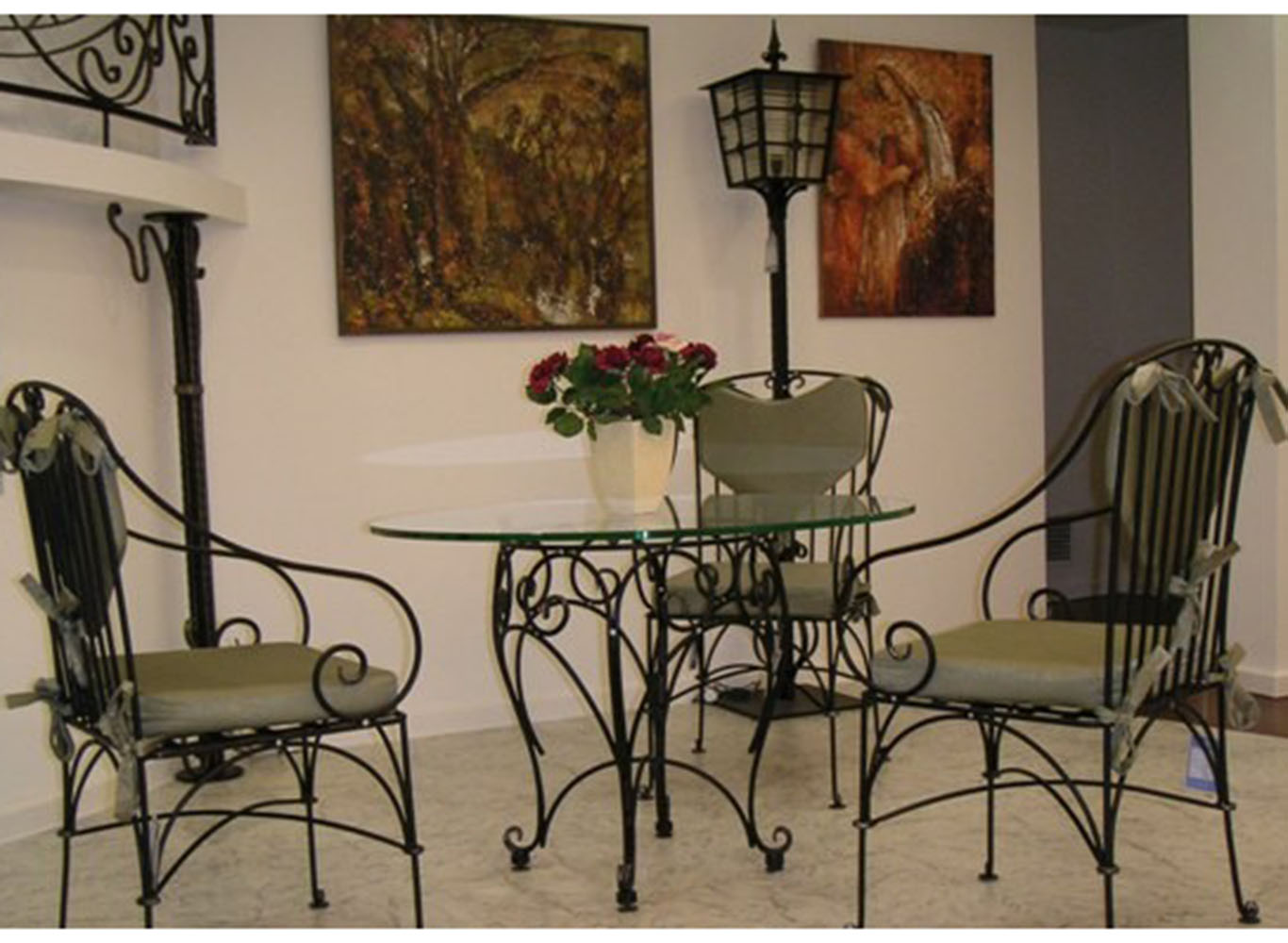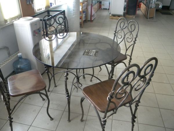 Кованый набор мебели с использованием закаленного стекла