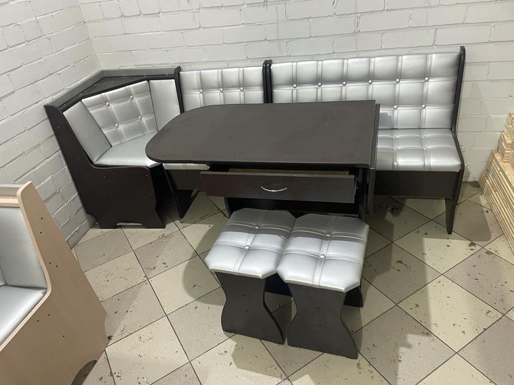 В набор входит угловая скамья, стол и два табурета. Множество вариантов цветов.