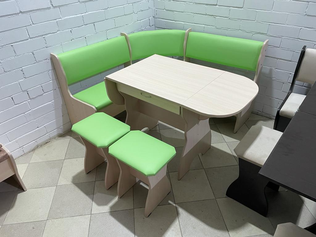 код 128152В набор входит угловая скамья, стол и два табурета. Множество вариантов цветов.