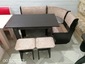 Состоит из углового кухонного дивана, обеденного стола и двух мягких табуретов. Под сиденьем находятся ящики для хранения. Универсальная сборка - право/лево.