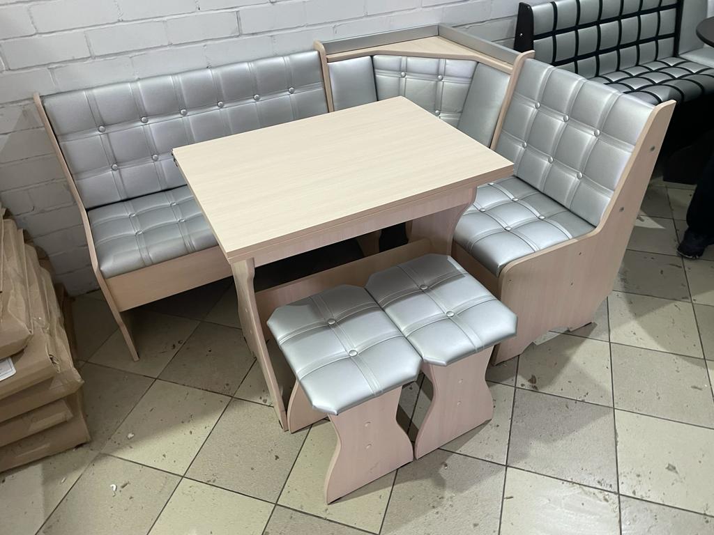 код 128173В набор входит угловая скамья, стол и два табурета. Множество вариантов цветов.