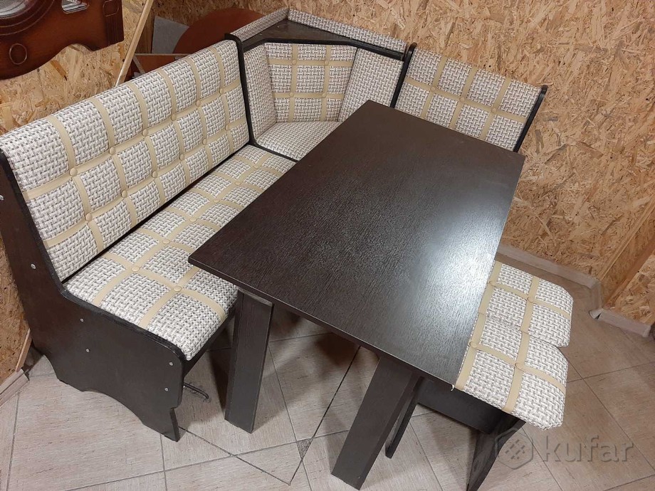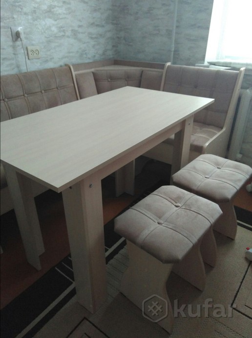 Комплект: угловая кухонная скамья, стол и два табурета.