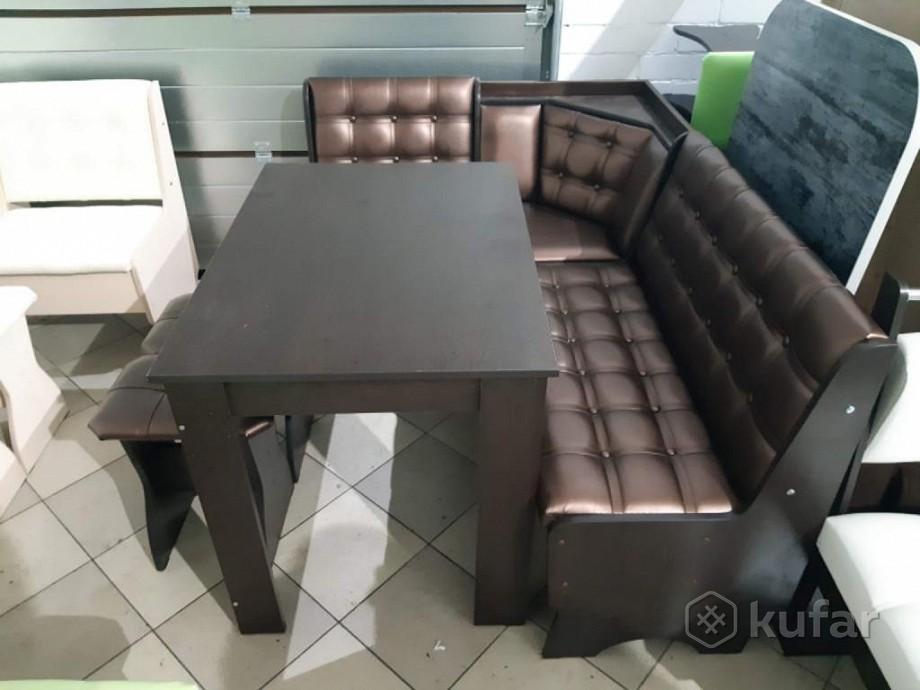 В набор входит угловая скамья, стол и два табурета. Цвет и размер на выбор.