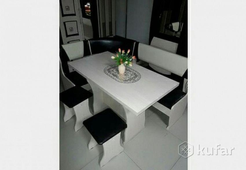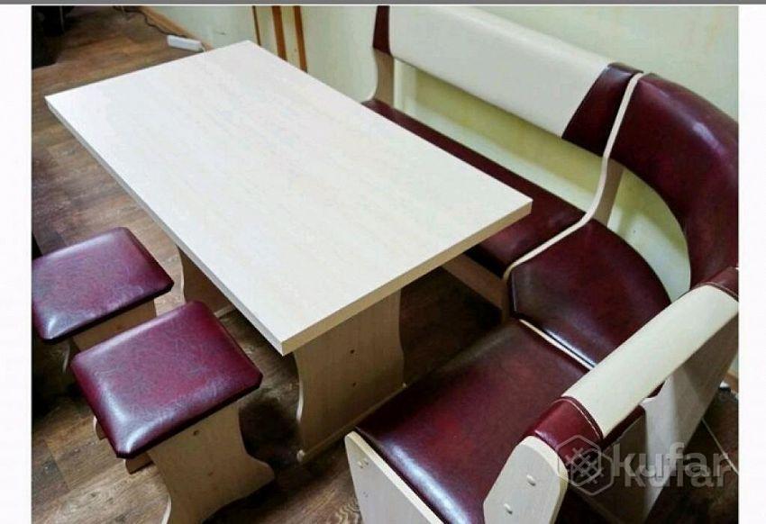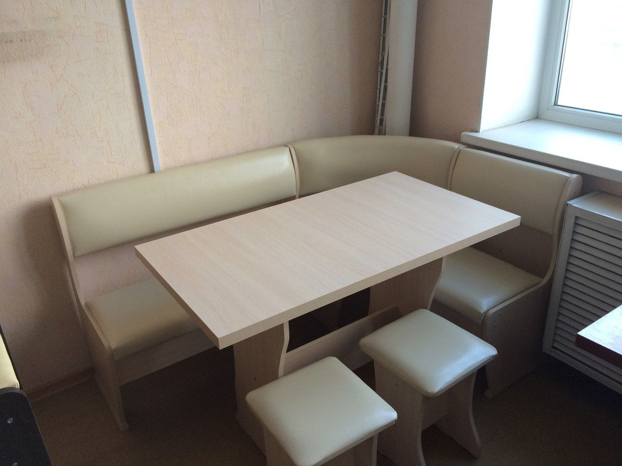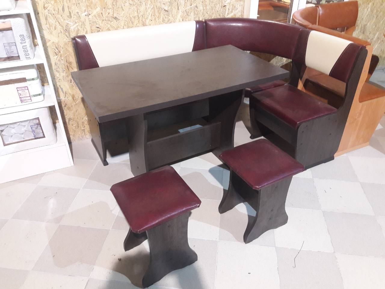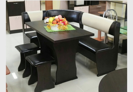 В набор входит угловая скамья, стол и два табурета. Цвет и размер на выбор.