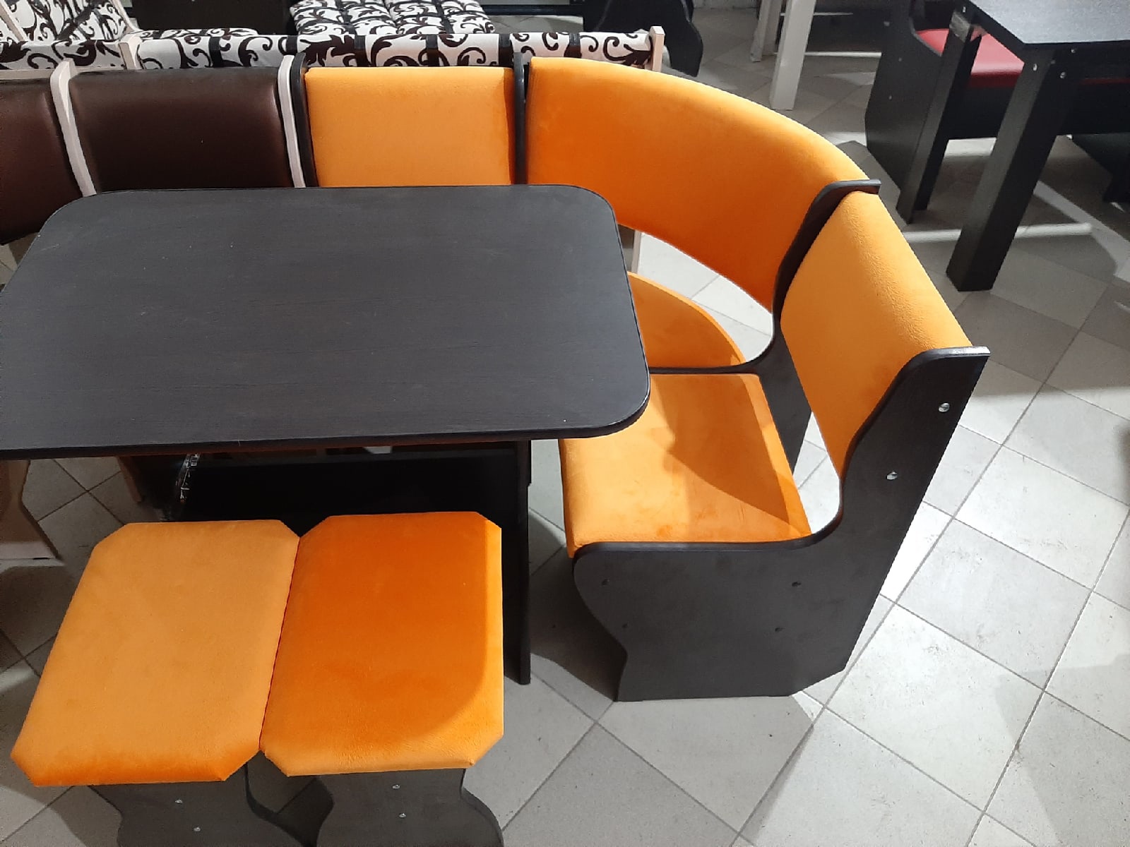 код 124502В набор входит угловая скамья, стол и два табурета. Множество вариантов цветов.