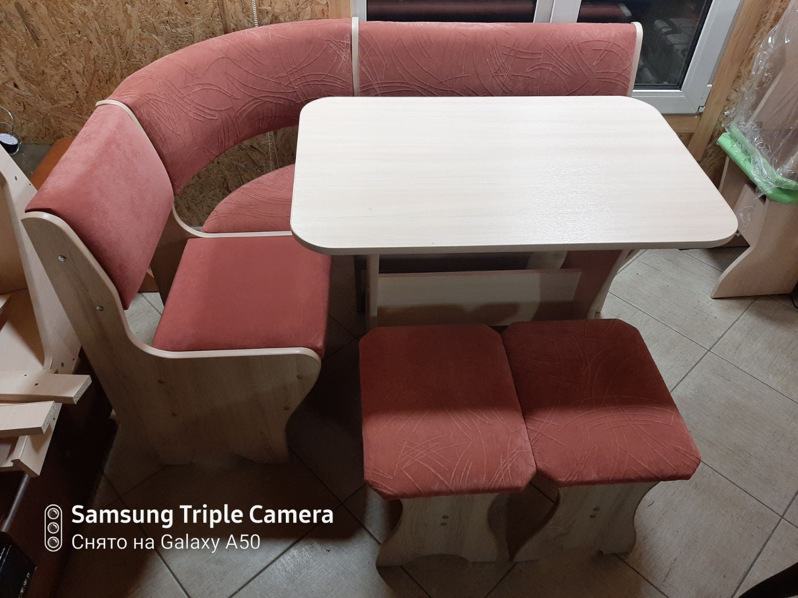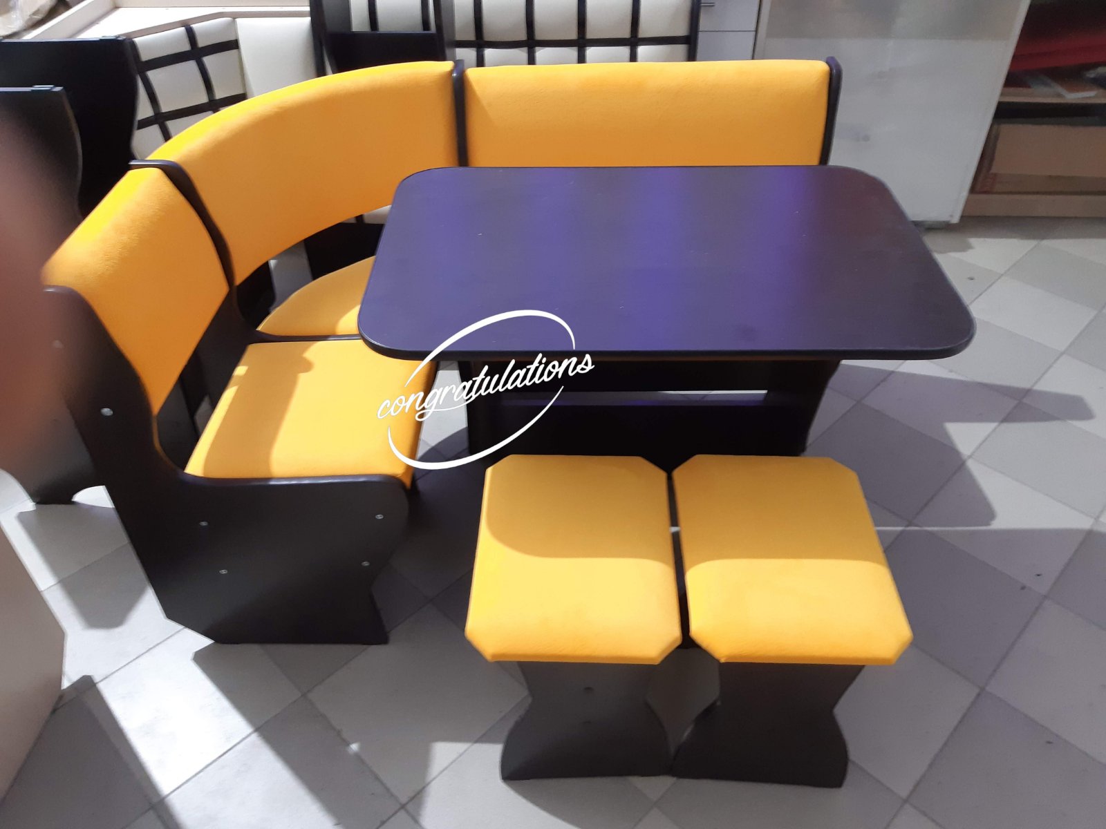 В набор входит угловая скамья, стол и два табурета. Множество вариантов цветов.