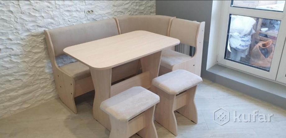 код 105253Стильный набор для кухни с угловой скамьей, столом и двумя табуретами. Выбор обивки.