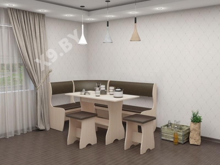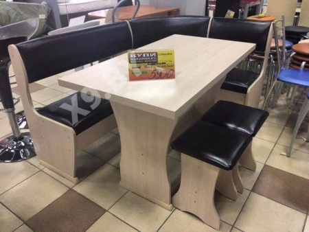 В набор входит угловая скамья, стол и два табурета. Множество вариантов цветов.