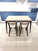 Набор включает в себя обеденный стол и 2 табурета. Разные цвета обивки.