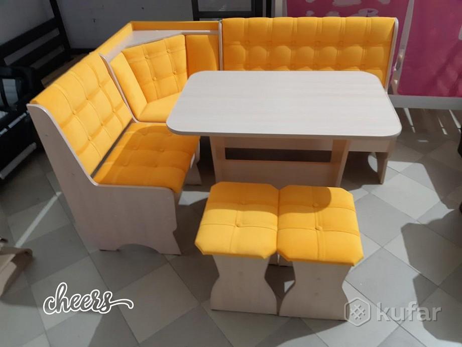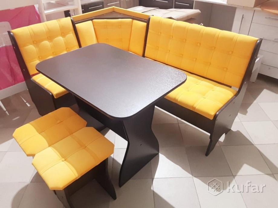 В набор входит угловая скамья, стол и два табурета. Цвет и размер на выбор.