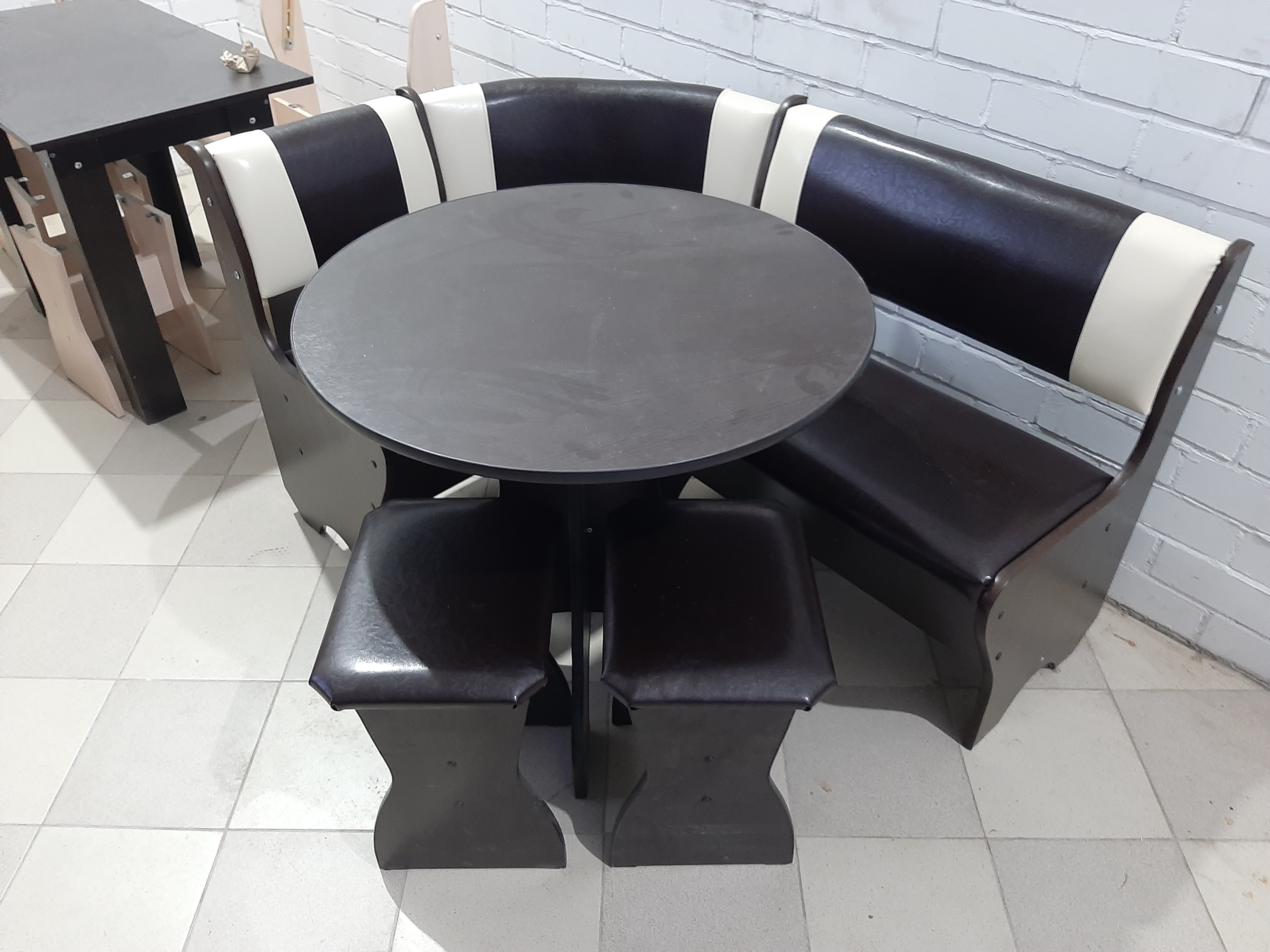 Кухонный уголок – это готовое решение для интерьера комнаты. В набор включены: скамья, стол и табуреты.