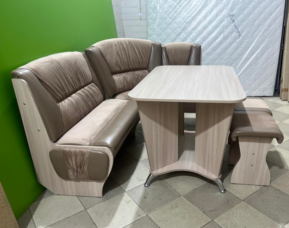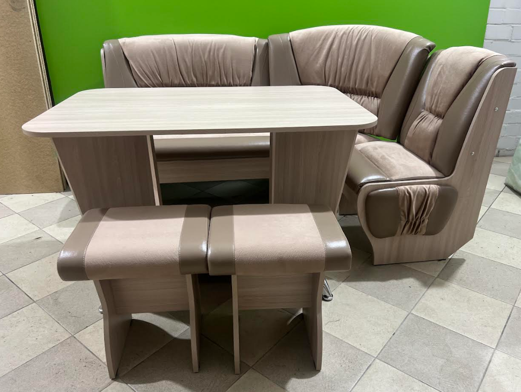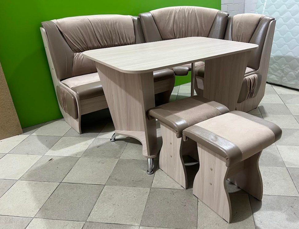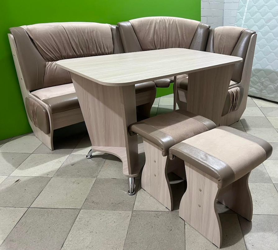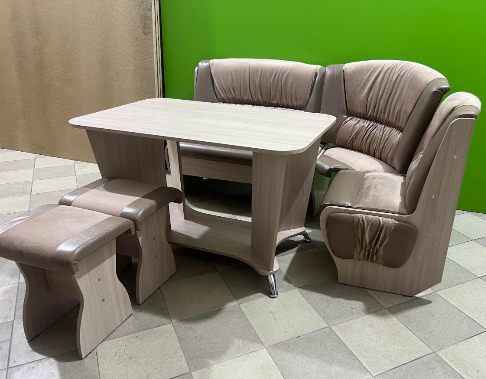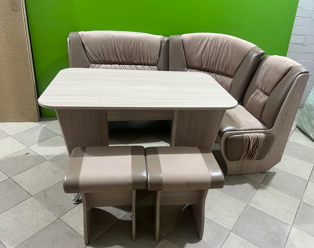 код 148129В набор входит угловой диван, стол и два табурета. Возможна продажа по элементам.