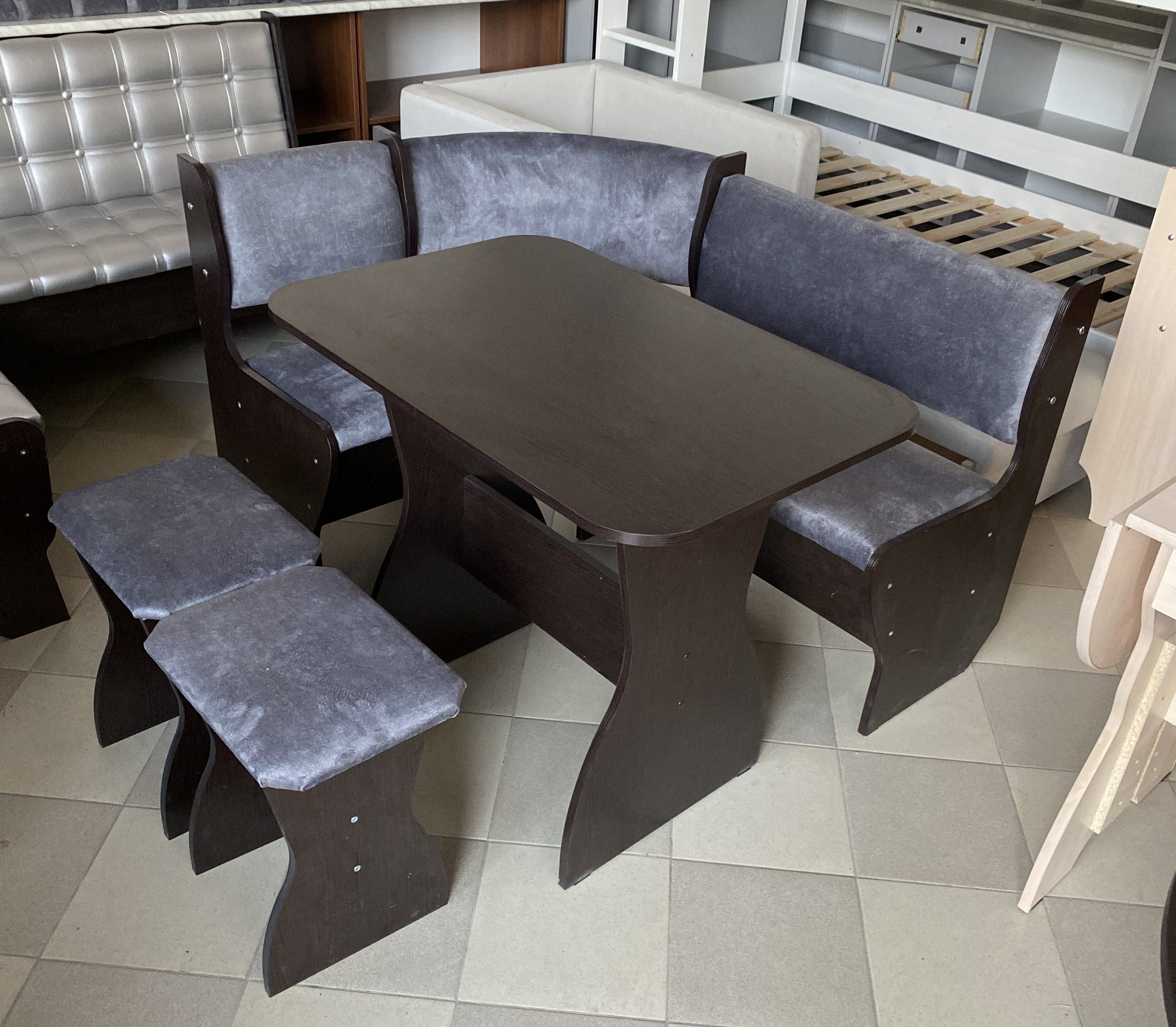 В набор входит угловая скамья, стол и два табурета. Множество вариантов цветов.