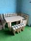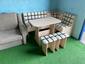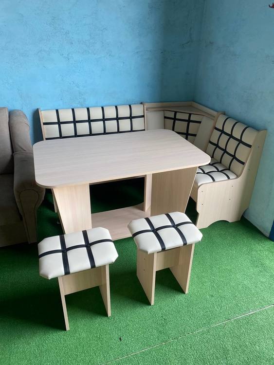 В набор входит угловая скамья, стол и два табурета. Цвет и размер на выбор.