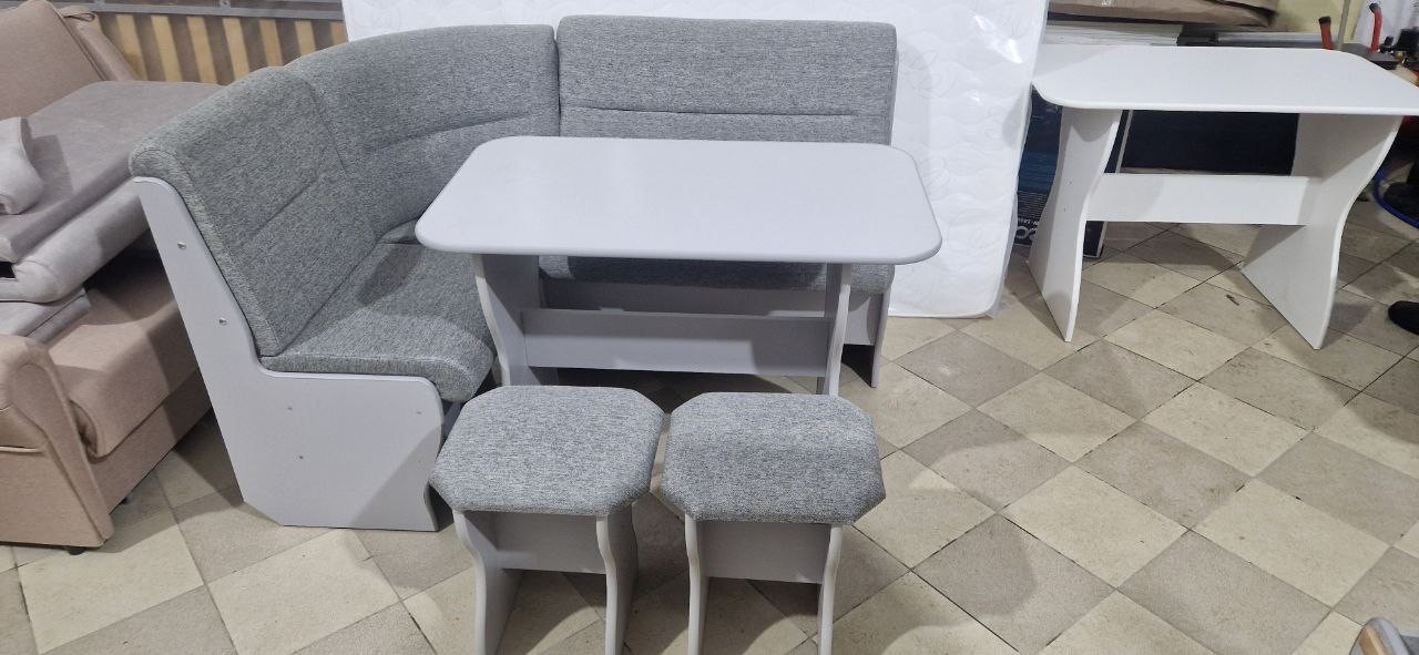 В набор входит угловая скамья, стол и два табурета. Множество вариантов цветов.