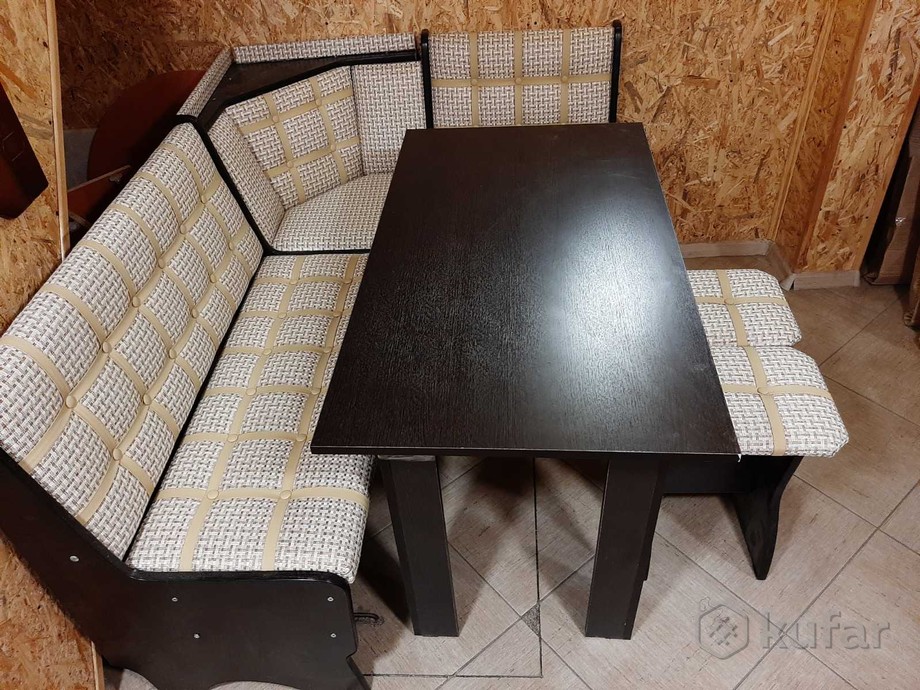 В набор входит угловой диван, стол и два табурета. Возможна продажа по элементам.