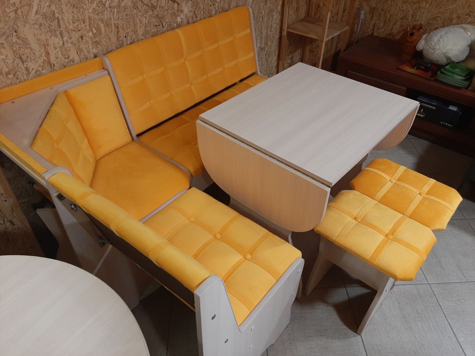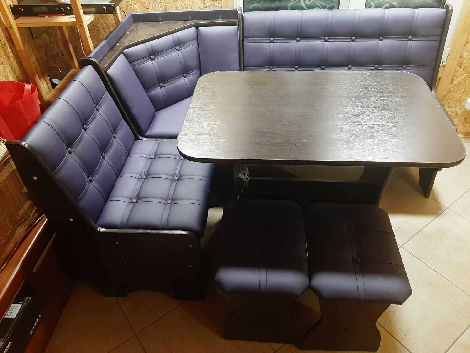 В набор входит угловой диван, стол и два табурета. Возможна продажа по элементам.