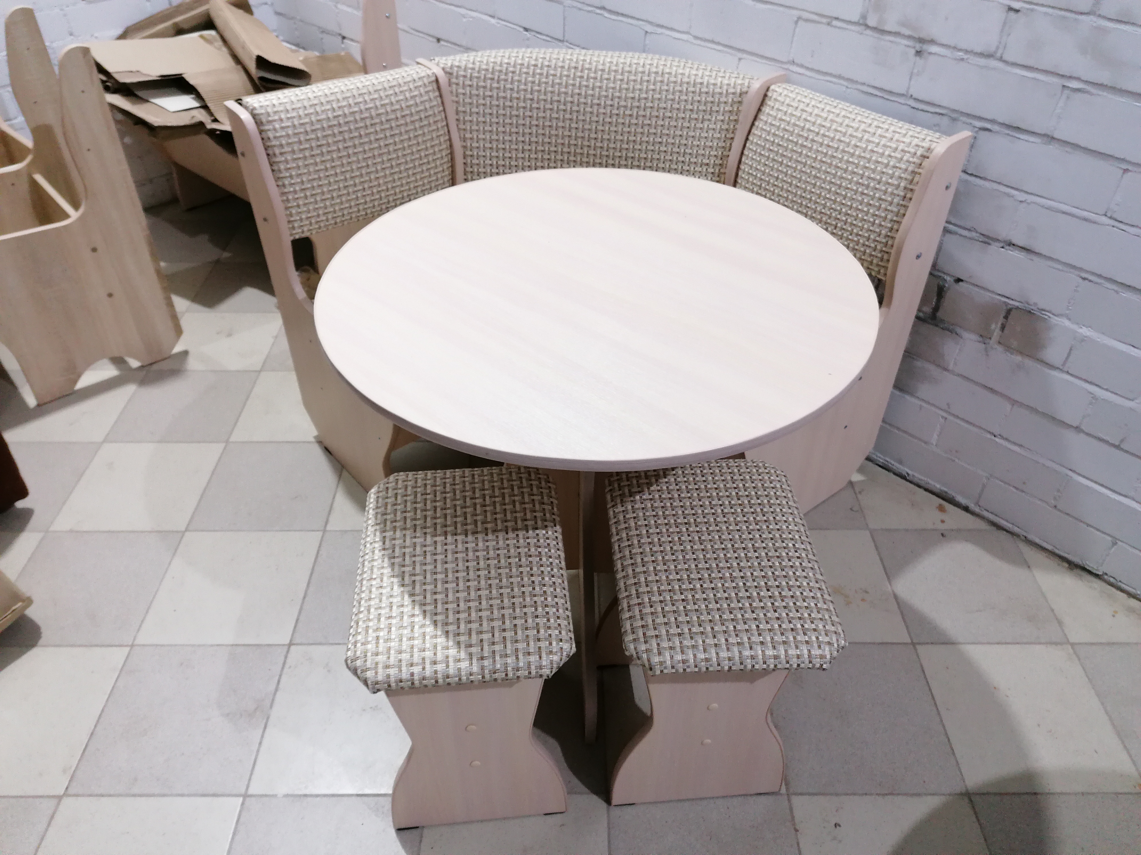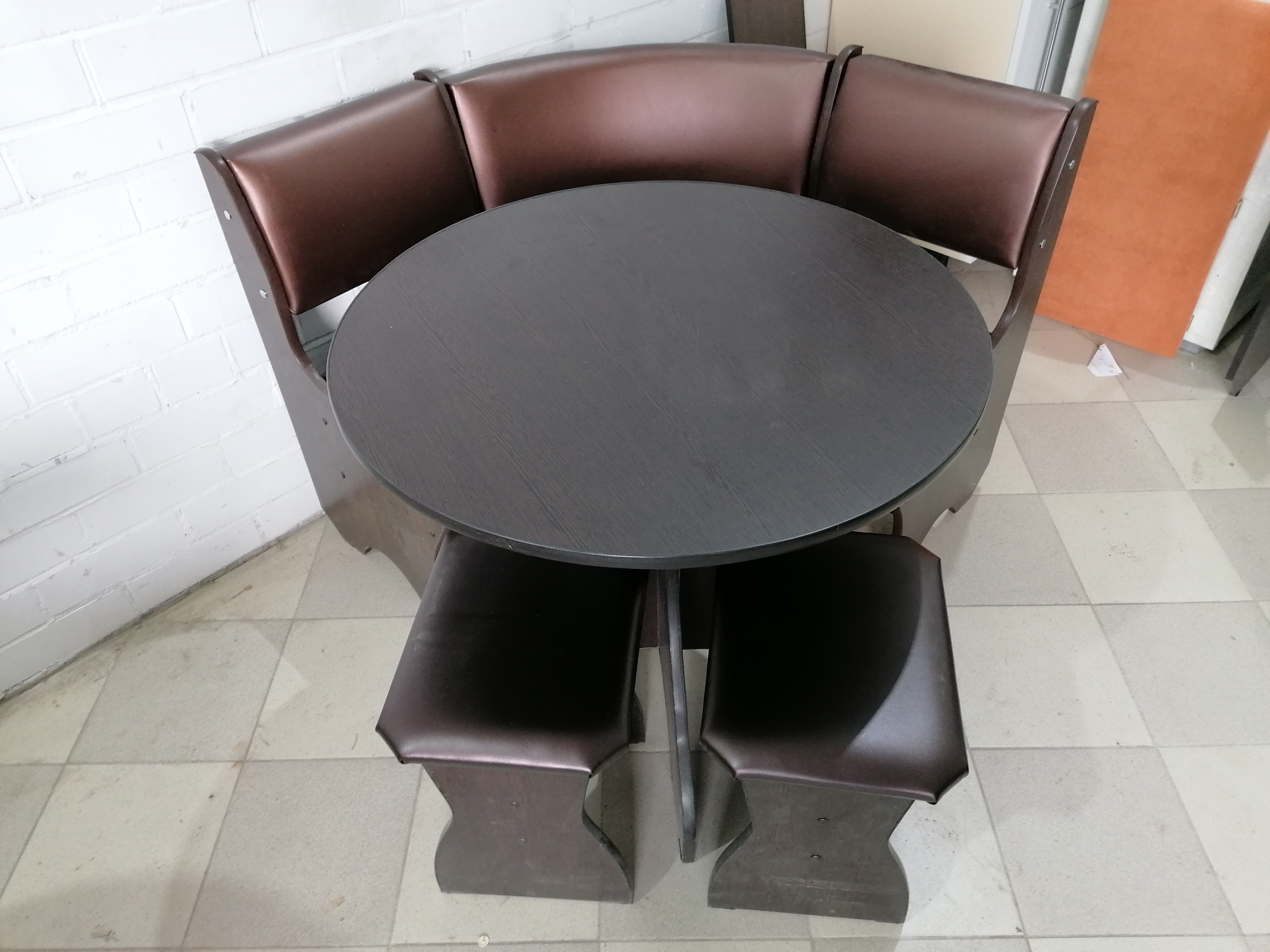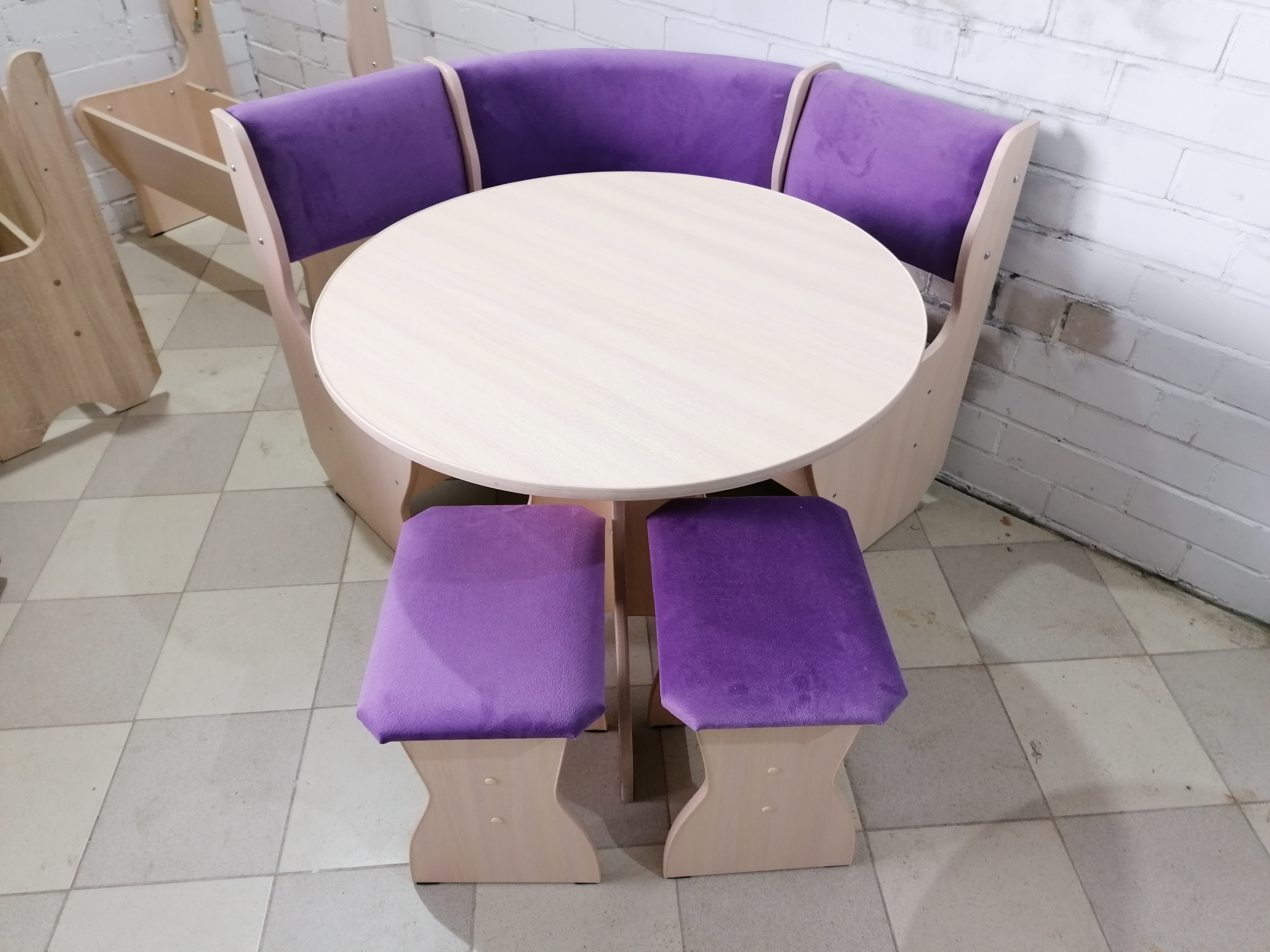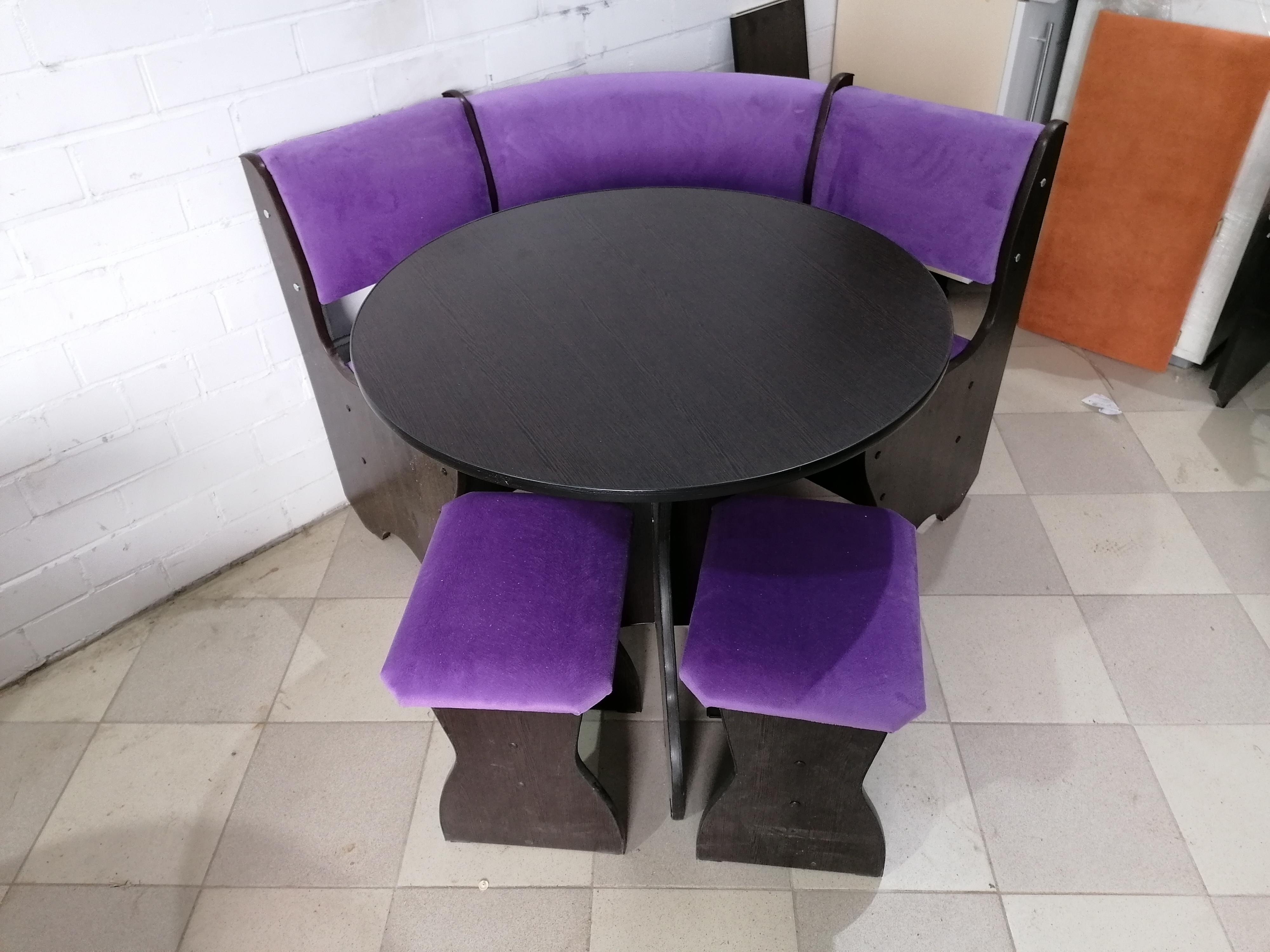Комплект: угловая кухонная скамья, стол и два табурета.