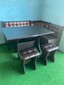 В набор входит угловая скамья, стол и два табурета. Цвет и размер на выбор.
