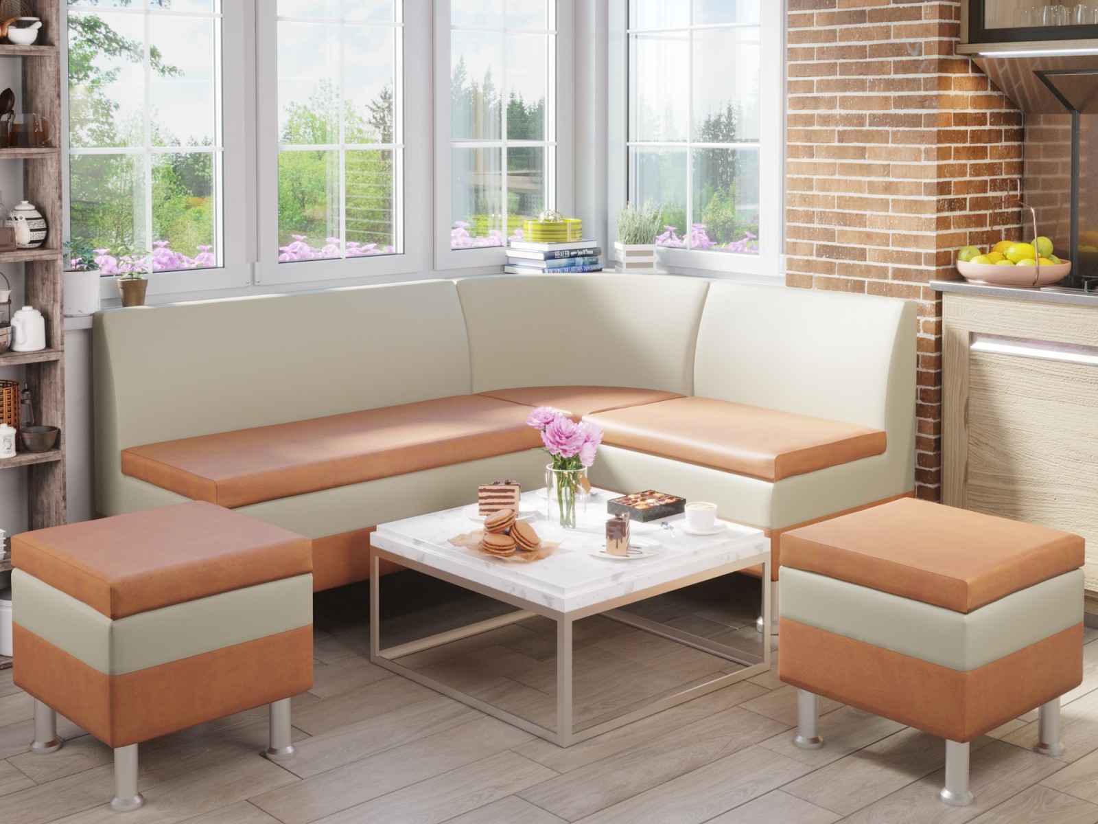 Кухонный уголок «Секрет-2» с пуфиками (брауни/латте)