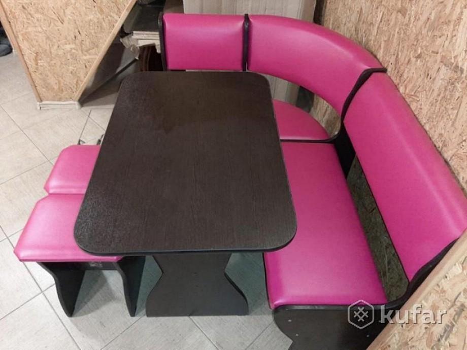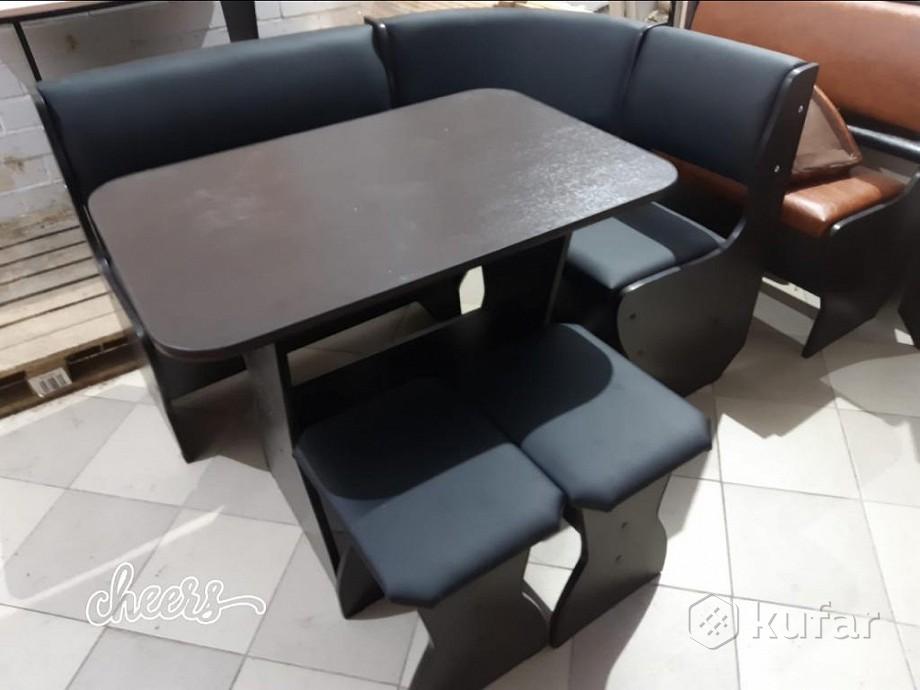 В набор входит угловая скамья, стол и два табурета. Цвет и размер на выбор.