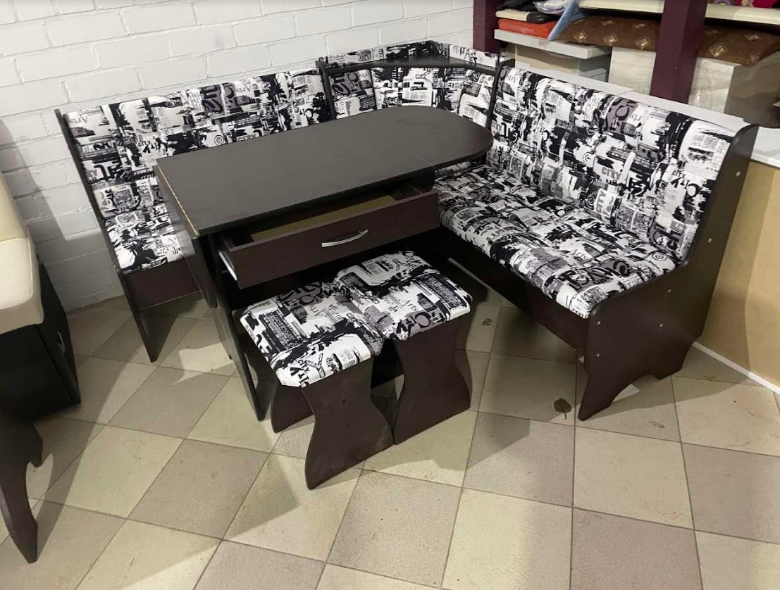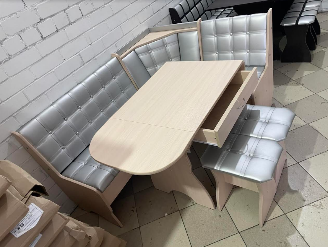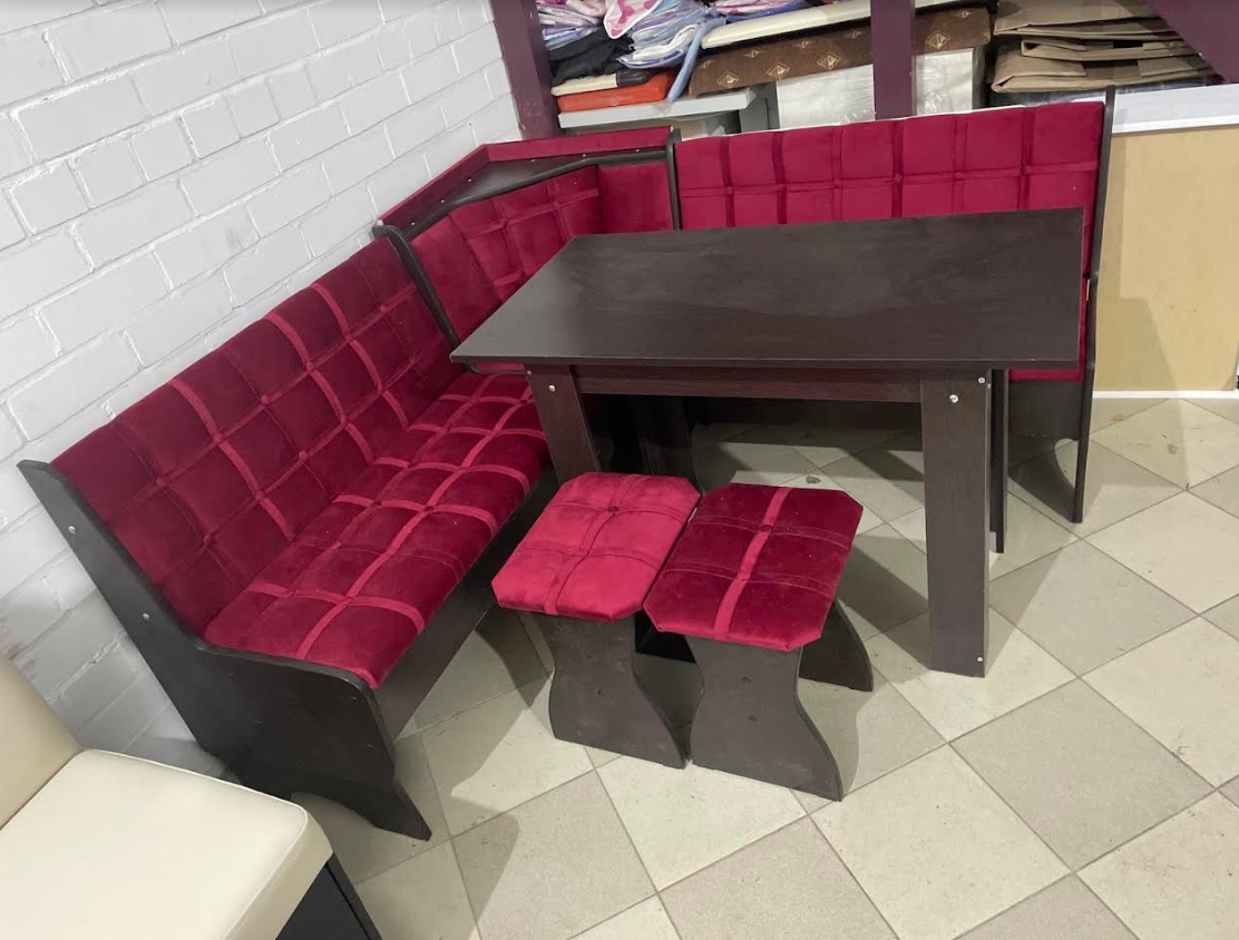 код 146636В набор входит угловая скамья, стол и два табурета. Цвет и размер на выбор.