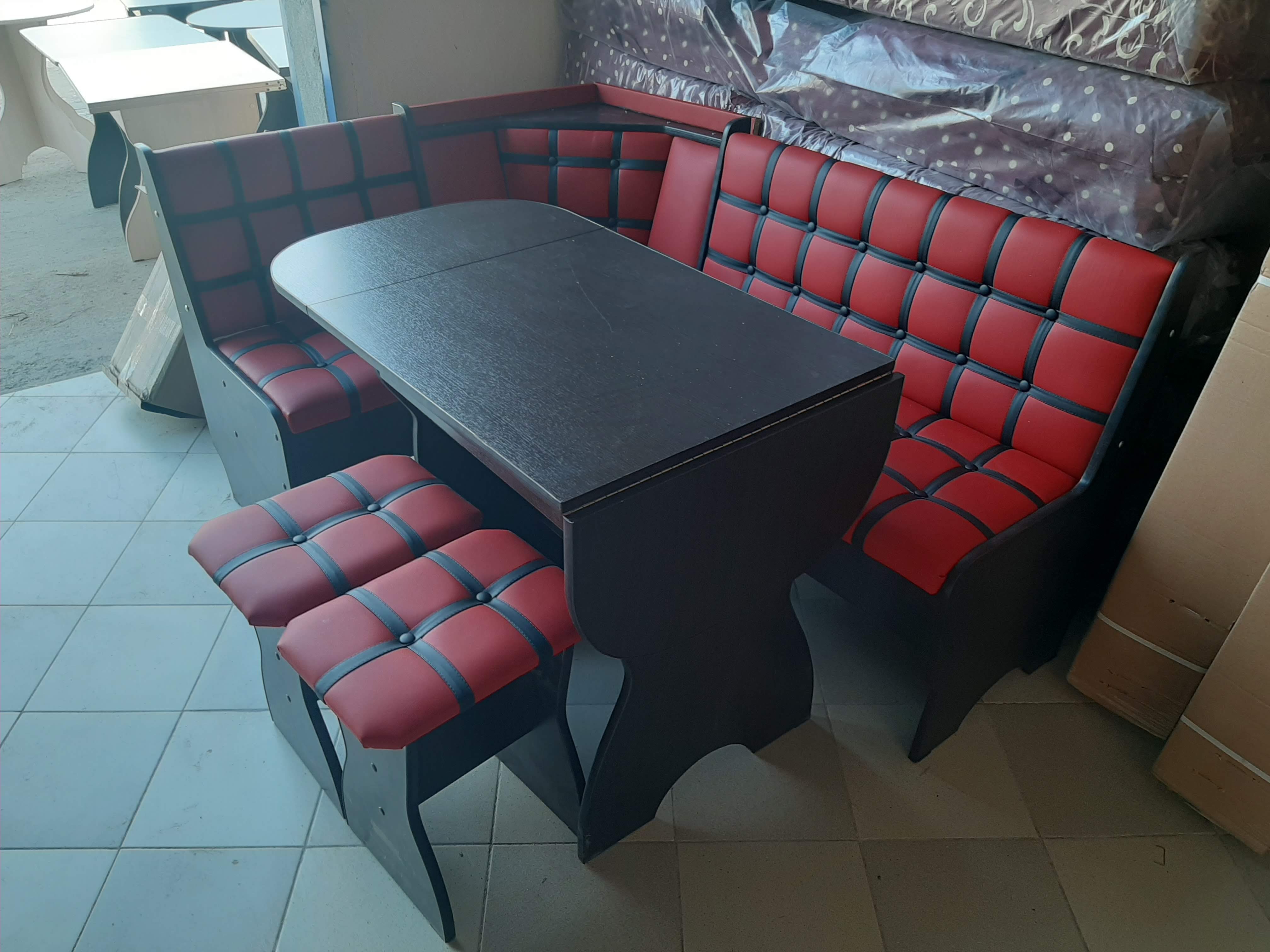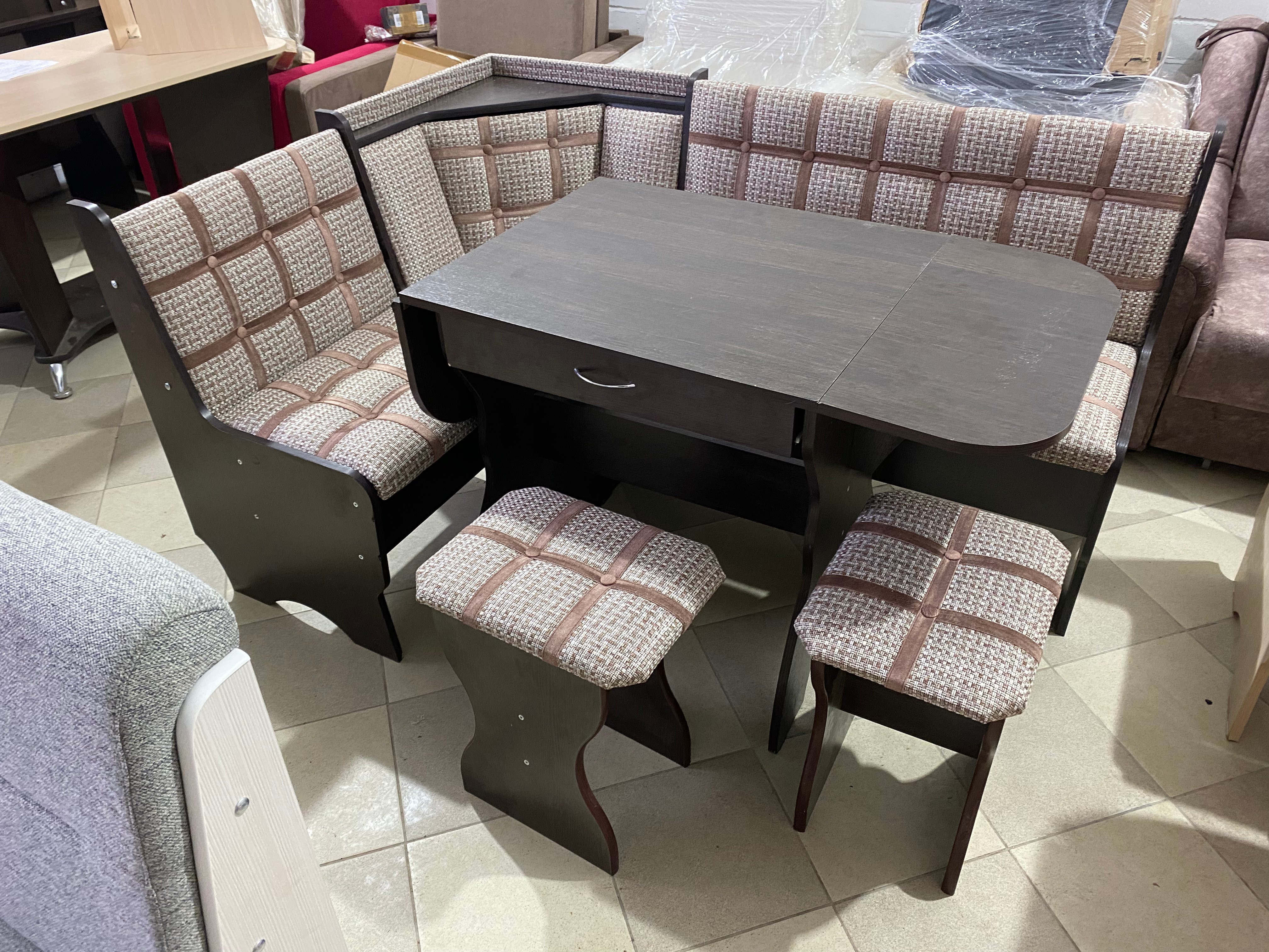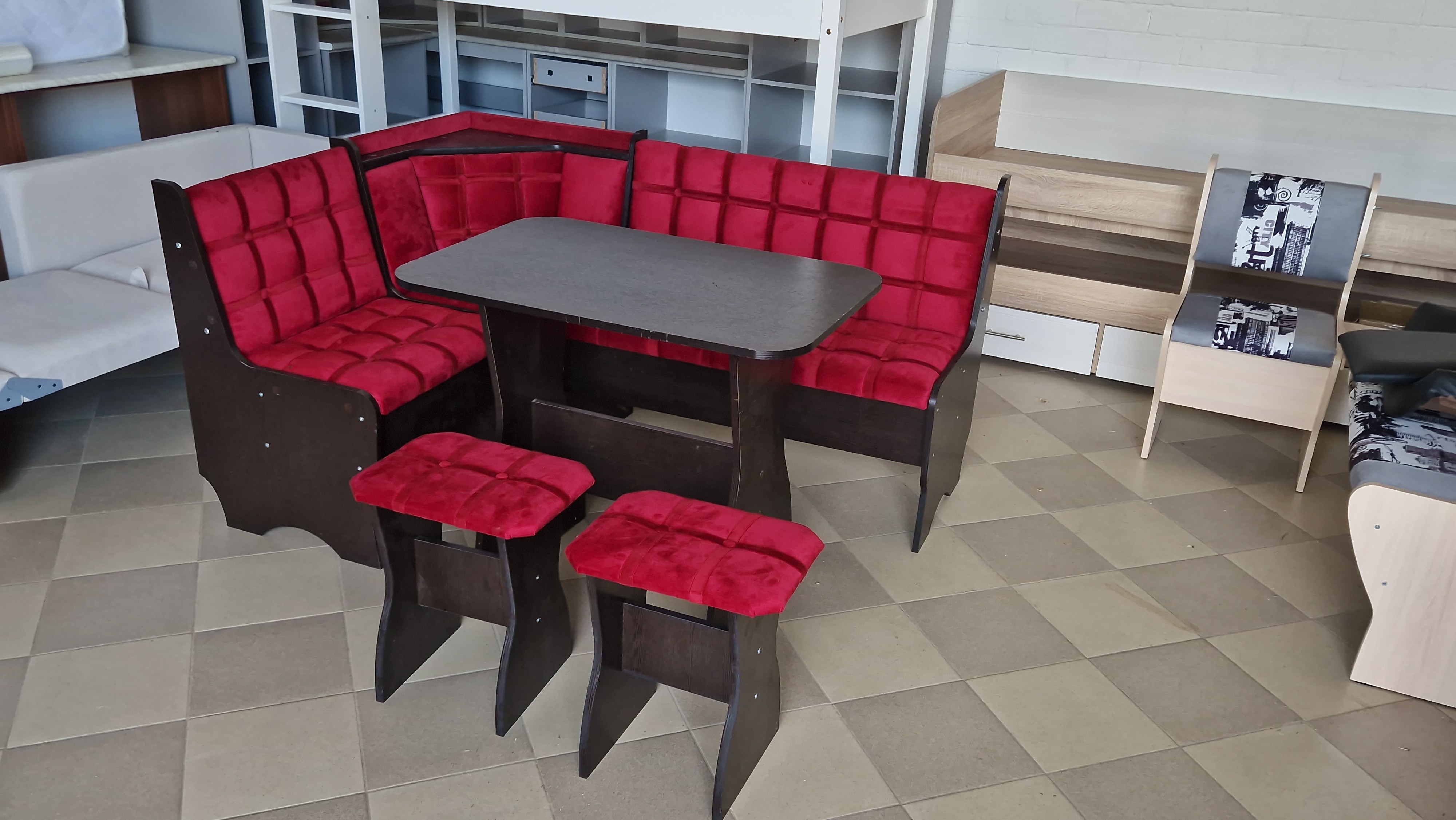 код 146676В набор входит угловая скамья, стол и два табурета. Цвет и размер на выбор.