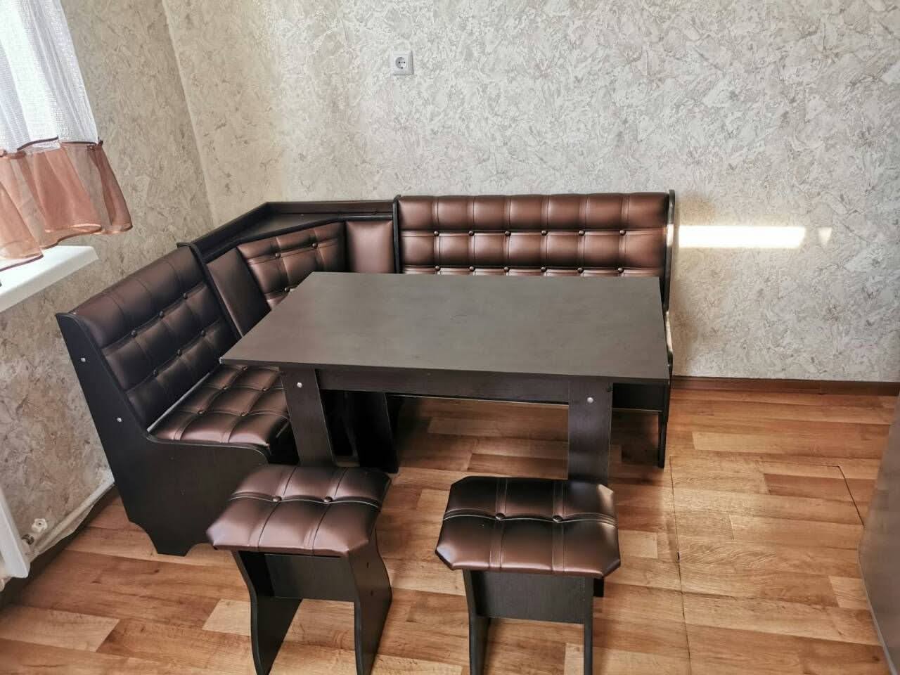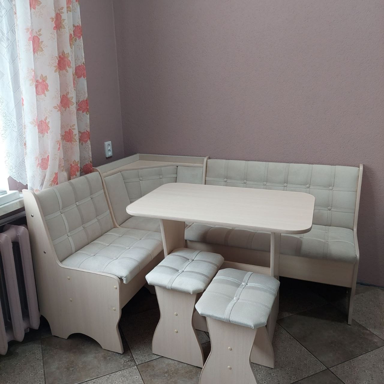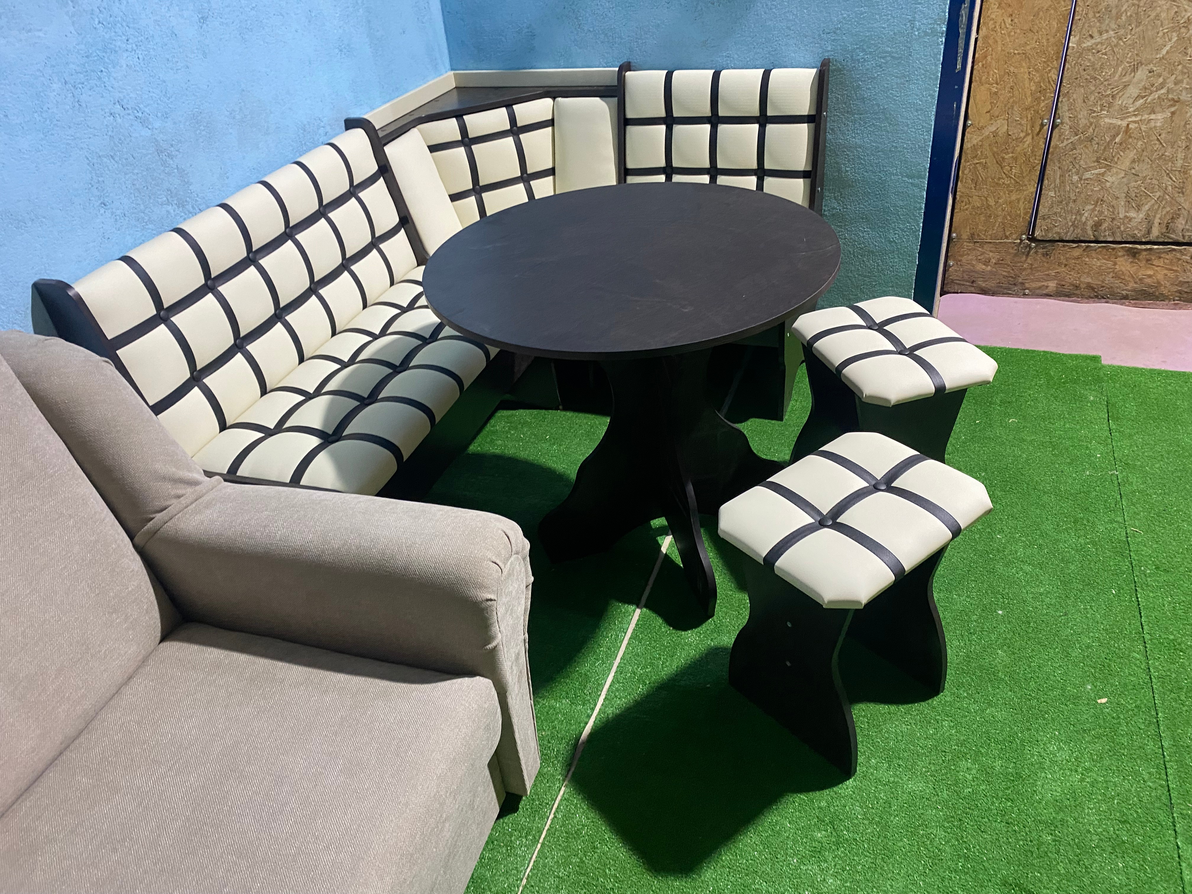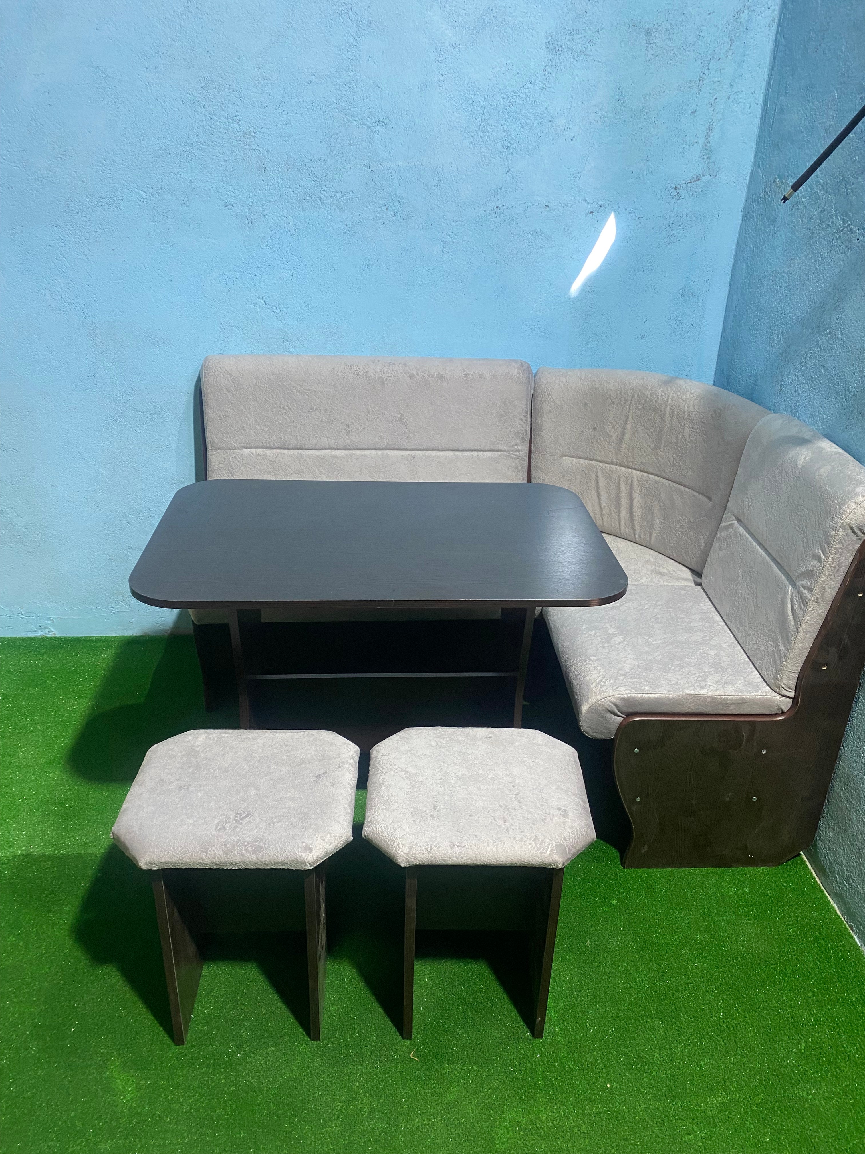 В набор входит угловой диван, стол и два табурета. Возможна продажа по элементам.