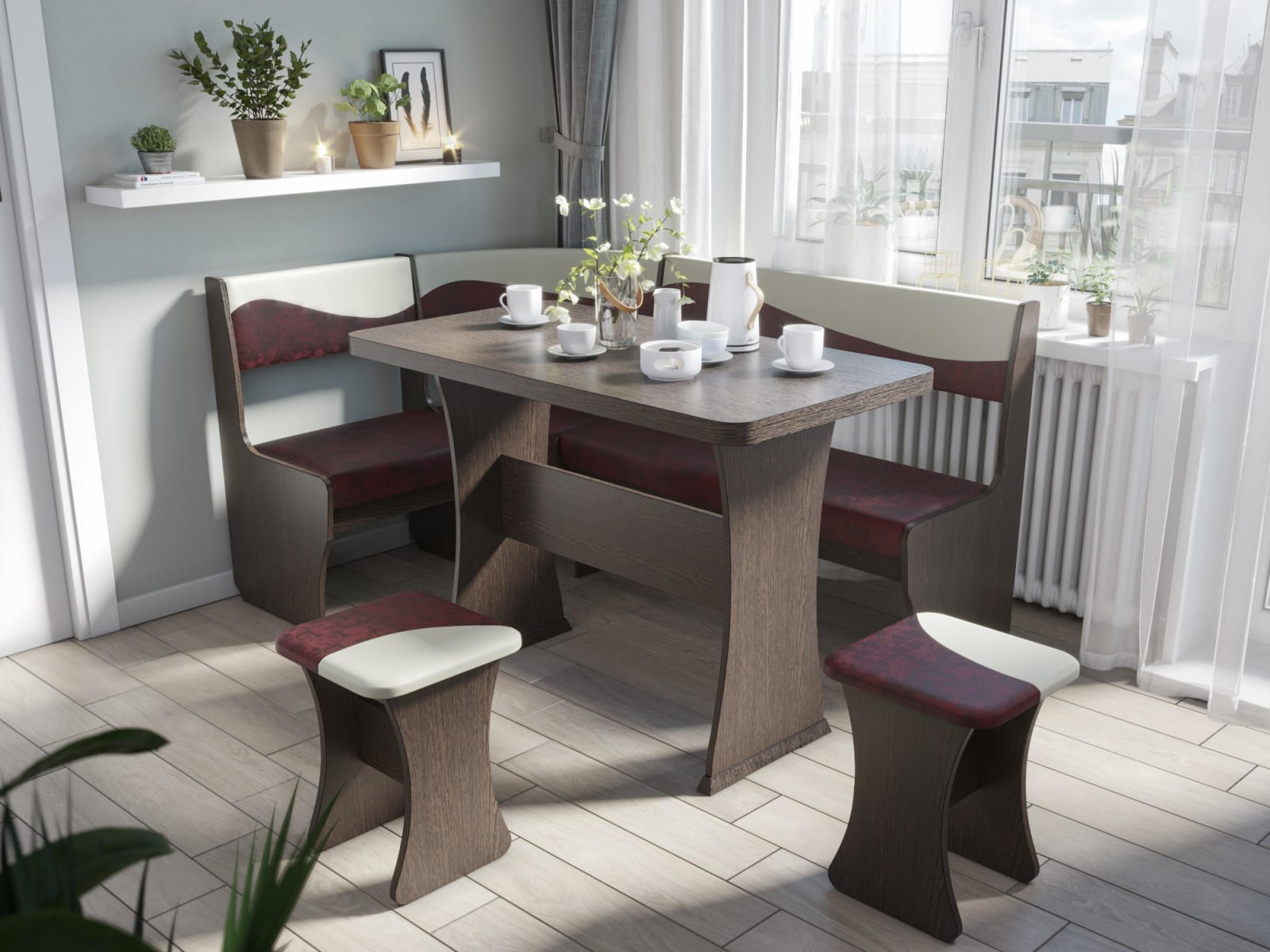 Кухонный уголок «Титул-1» (дуб венге/кожзам бордо, какао)