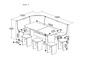 Состоит из: угловой скамьи, стола и двух табуреток. Два короба для хранения.