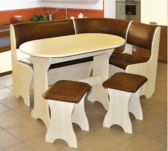 Комплект: угловая кухонная скамья, стол и два табурета.