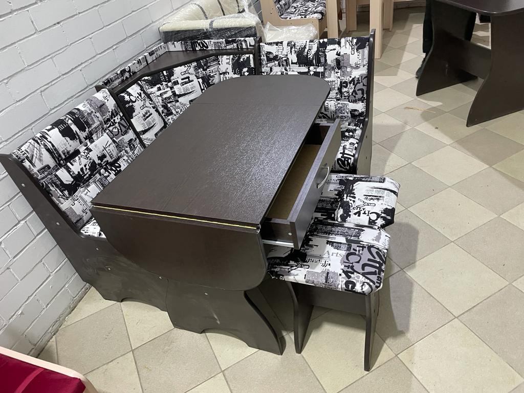 код 124490В набор входит угловая скамья, стол и два табурета. Классическая конструкция. Большой выбор расцветок.