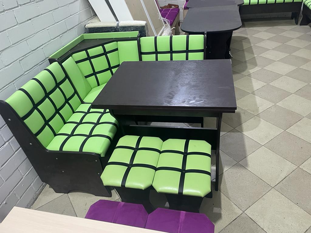 В набор входит угловая скамья, стол и два табурета. Множество вариантов цветов.