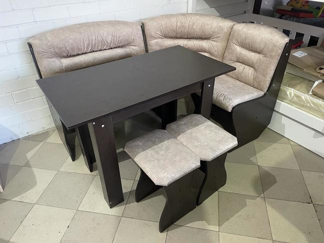 Комплект: угловая кухонная скамья, стол и два табурета.